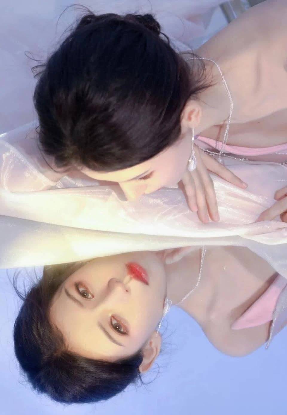 张予曦卧在镜子上的姿势凸显出优越的肩颈线条。这种看似随性的姿势,实则每个角度都经过精心设计,展现出她作为专业演员的镜头感。